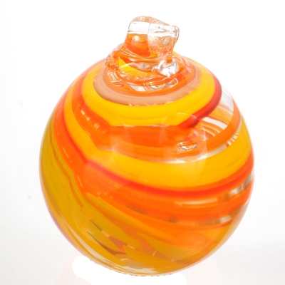 Glaskugle - gul og orange spiral