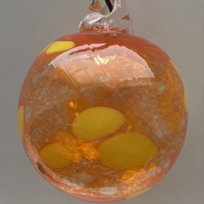 Glaskugle - transparent orange med gul