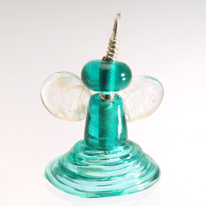 Engel af glas samlet på forsølvet kobbertråd